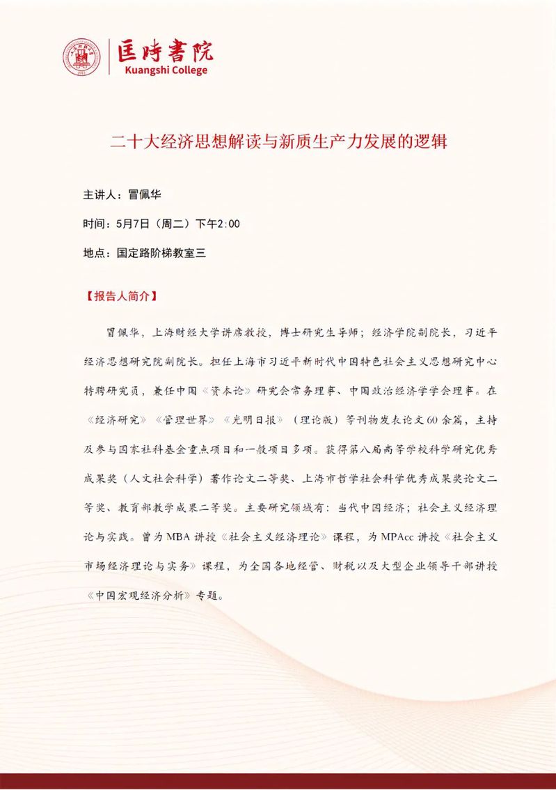 【主题】二十大经济思想解读与新质生产力发展的逻辑