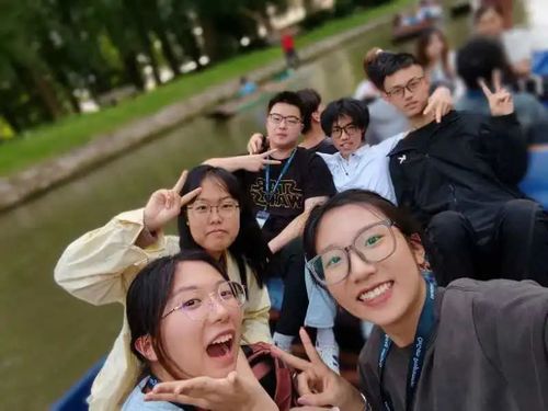 学习生活之余,同学们还参与了许多既有趣又富有教育意义的实践活动。其中最为人称道的传统项目之一就是punting——乘坐平底船泛舟于康河之上,这不仅是一种放松心情的方式,也是体验剑桥独特风情的最佳途径。同学们在导游的带领下,一边欣赏着两岸的美丽风景,一边聆听关于剑桥历史与趣闻的讲解,享受着一段难忘的水上之旅。