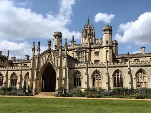 此外,在fellow老师的带领下,全体同学还特别参观了历史悠久的St. John's College(圣约翰学院)。一踏入这座著名的学院,首先映入眼帘的就是宏伟壮观的门楼,穿过门楼,一片开阔的中心庭院便展现在眼前。庭院中绿草茵茵,古老的建筑环绕四周,散发出一种庄重而宁静的气息。漫步在这座拥有数百年历史的学院内,每一块石头似乎都在诉说着过往的故事,让人不禁沉醉于这片知识与文化的海洋之中。