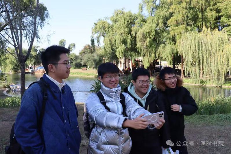 桂香渐隐,梧桐叶缀满秋的絮语,风携清冽气息,递来秋天的正式邀约。 为进一步丰富匡时书院团学实践活动,打造“书院家文化”共同体,11 月 18 日下午,匡时书院组织师生赴共青森林公园开展 “邂逅秋色,同心共聚” 主题活动。 为帮助匡时学子在繁忙学业之余放松身心、亲近自然,搭建师生沟通桥梁、拉近心灵距离,经朱璐副院长提议和策划,书院学生工作团队班主任朱冬妮老师、弓晓敏老师、钱若渝老师、许浩涛老师,行政秘书陆婷婷老师及辅导员傅雨薇老师积极参与,与同学们一同探寻秋色、共话情谊。